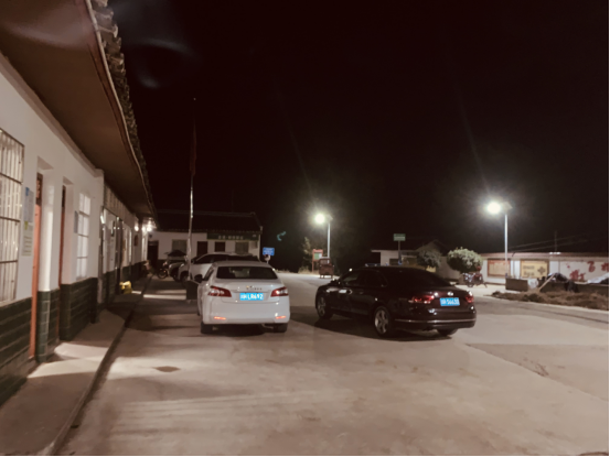 安装太阳能路灯后的村委会